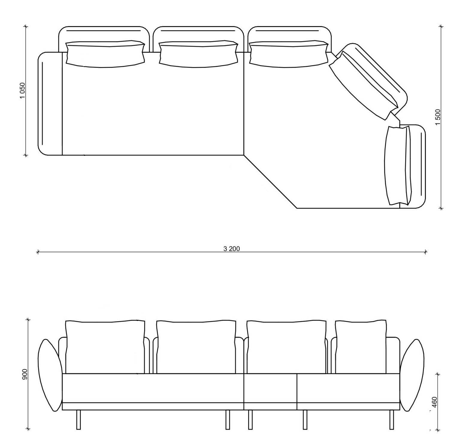 Os pés de 16 cm e os encostos elegantes dão leveza à estrutura, enquanto as capas removíveis dos encostos e assentos trazem praticidade.